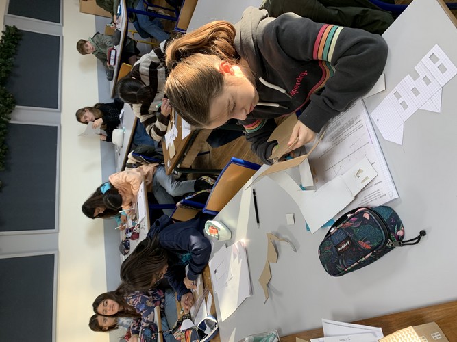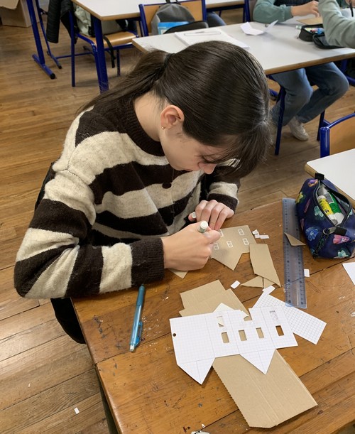 Les 6èmes travaillent la géométrie en mathématiques avec Mme BOUDIER et réalisent un village de Noël